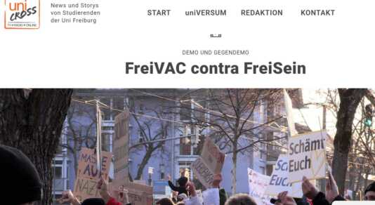 Die Demo gegen die Coronamaßnahmen hatten auch an diesem Tag aus dem radikal linken Freiburg Lager FreiVAC Gegenwind. Dieser antidemokratische Mob aus selbsternannten Tugendwächtern stellte auch an diesem Tag gegen die friedlich demonstrierenden Menschen. Studenten mobilisierten sich dazu ebenfalls.